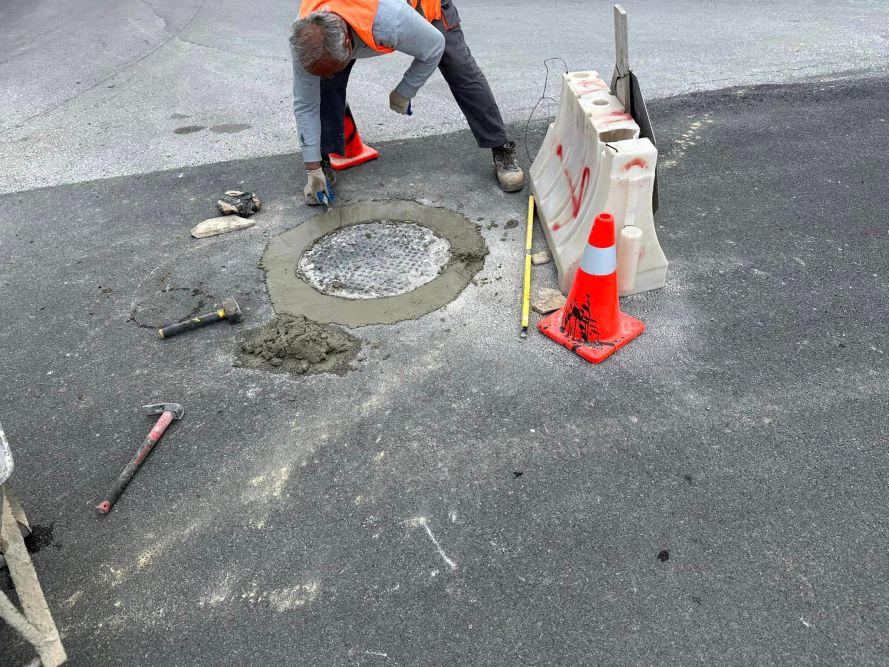 Με ιδιαίτερη προσοχή γίνεται και η ευθυγράμμιση της νέας ασφάλτου με τα φρεάτια της αποχέτευσης και τις σχάρες ομβρίων, ώστε το οδόστρωμα να παρουσιάζει ομαλή επιφάνεια.