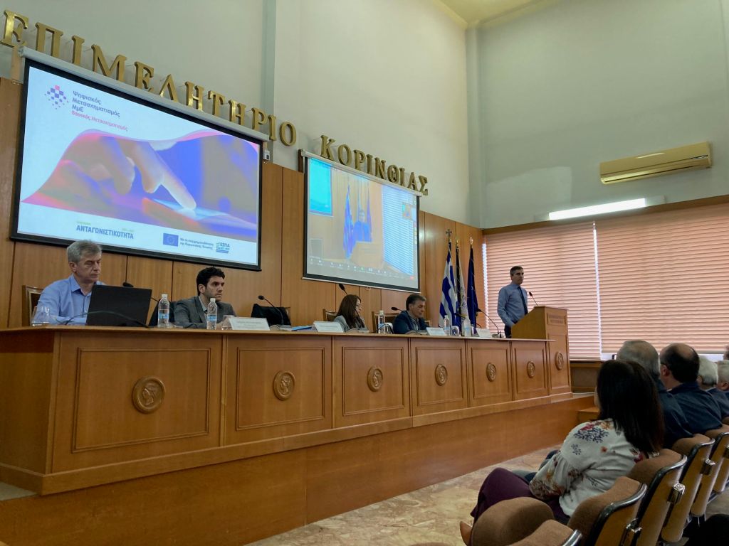 Με επιτυχία πραγματοποιήθηκε η εκδήλωση παρουσίασης των προγραμμάτων «Ψηφιακός Μετασχηματισμός ΜμΕ» και «Πράσινη Μετάβαση ΜμΕ» του προγράμματος Ανταγωνιστικότητα 2021 – 2027 στο Επιμελητήριο Κορινθίας.