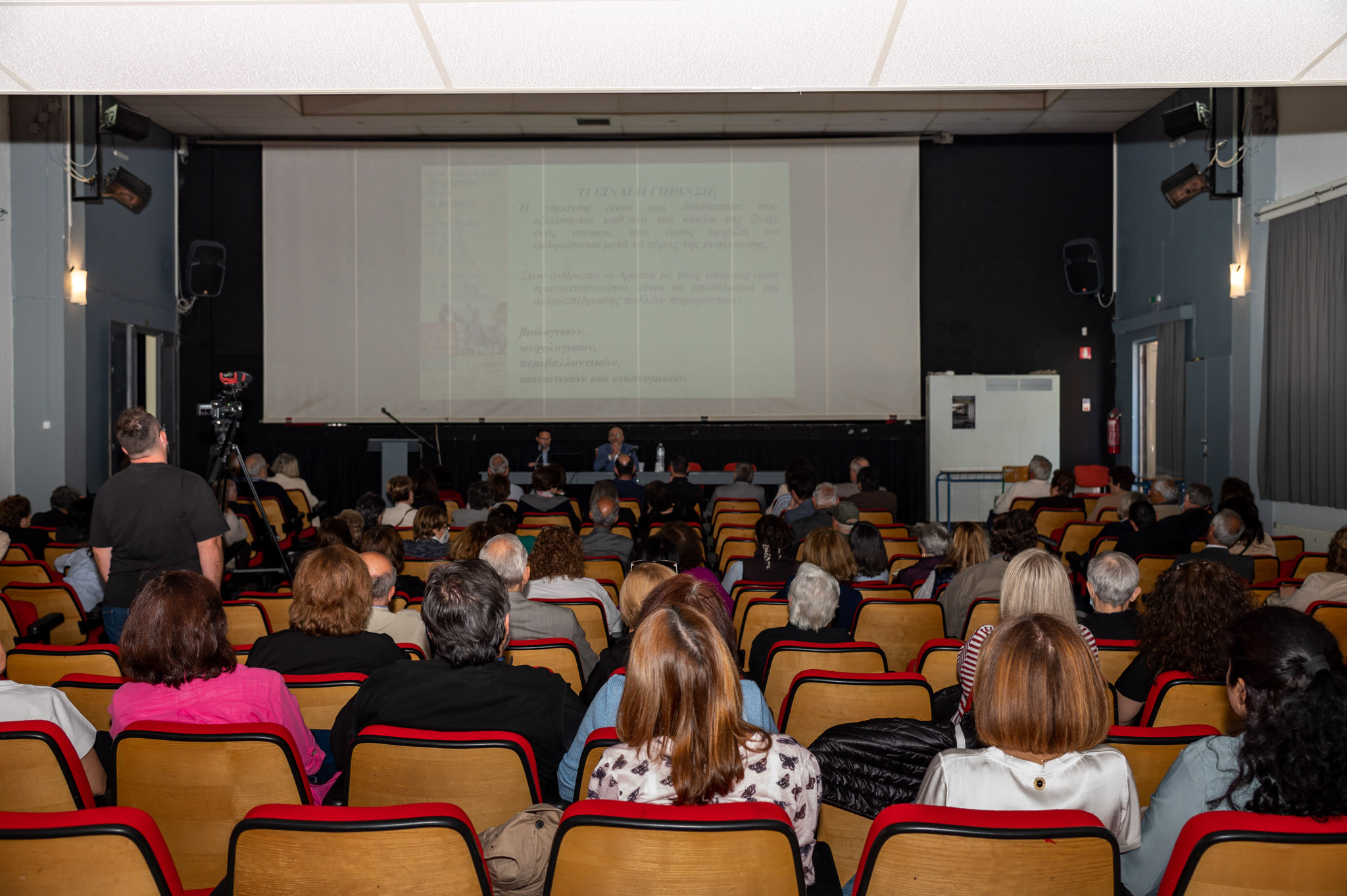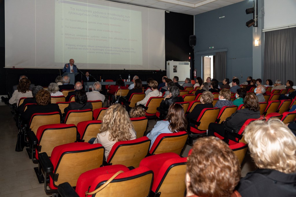 Εν συνεχεία οι δύο διακεκριμένοι ομιλητές αναφέρθηκαν στο κατ’ εξοχήν θέμα της ημερίδας, αρχής γενομένης από τον Κωνσταντίνο Στολάκη, Γηρίατρο MD, ο οποίος μίλησε για την γηριατρική ευπάθεια, εξηγώντας τι είναι και ποιοι ηλικιωμένοι κινδυνεύουν από αυτήν. Κατόπιν, το λόγο πήρε ο Κλινικός Διαιτολόγος Διατροφολόγος BSc, Κωνσταντίνος Συριάνος, ο οποίος αναφέρθηκε στην πρόληψη και την αντιμετώπιση προβλημάτων της τρίτης ηλικίας μέσω της διατροφής.