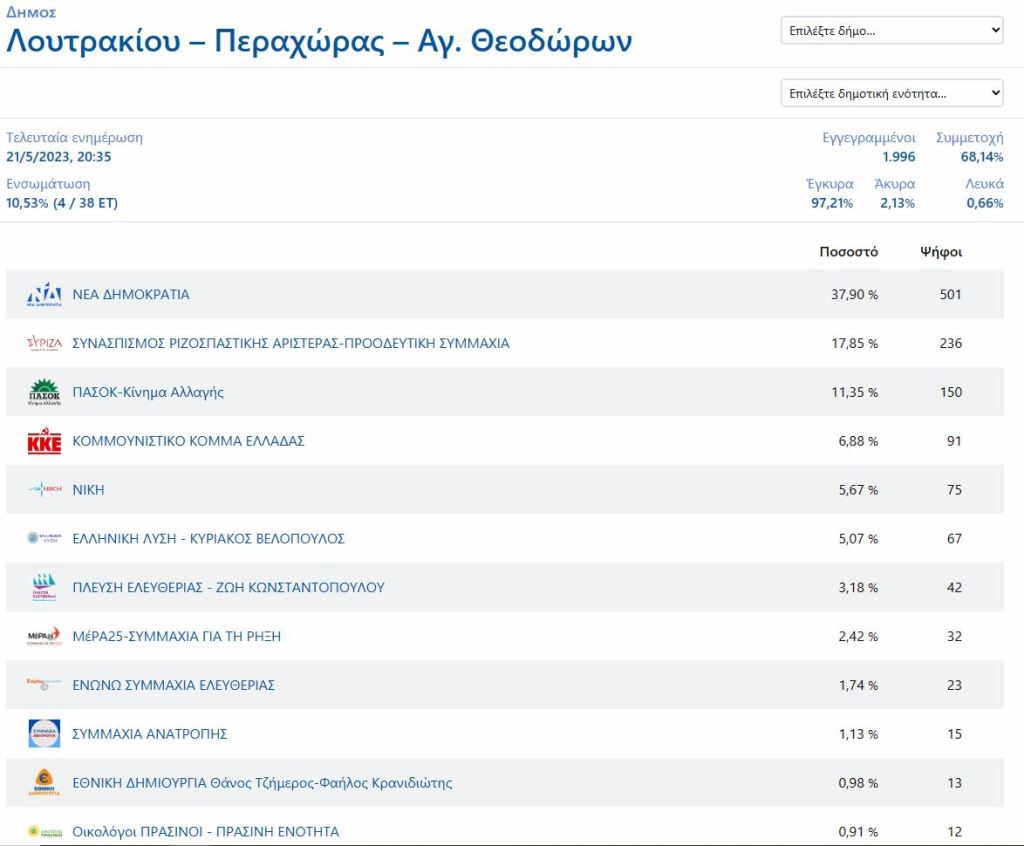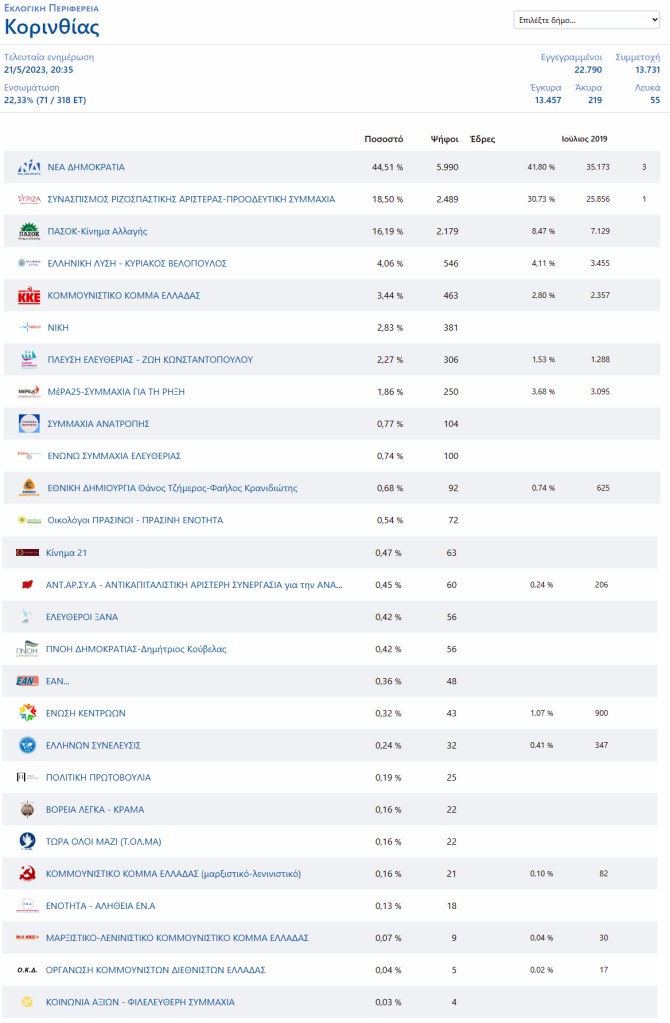 ΕΚΛΟΓΕΣ Μεγάλο προβάδισμα της ΝΔ και στην Κορινθία By gnomipoliton on 21/05/2023 • ( Σχολιάστε ) Τα μέχρι στιγμής αποτελέσματα στους δήμους της Κορινθίας Κοινοποιήστε: Κάνε κλικ για να μοιραστείς στο X(Ανοίγει σε νέο παράθυρο) Χ Πατήστε για κοινοποίηση στο Facebook(Ανοίγει σε νέο παράθυρο) Facebook Μου αρέσει! Φόρτωση... Σχετικά Κατηγορίες:ΕΚΛΟΓΕΣ Tagged as: ΔΗΜΟΣ ΒΕΛΟΥ-ΒΟΧΑΣ, ΔΗΜΟΣ ΣΙΚΥΩΝΙΩΝ