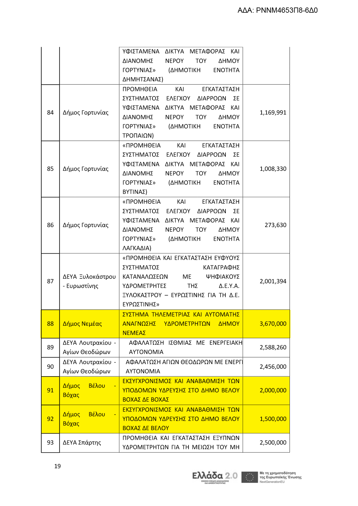 Από το οποίο συνολικά έχουν εγκριθεί 6.956.542,29€ για έργα ύδρευσης τα οποία ειναι έτοιμα για δημοπράτηση !!!!!!