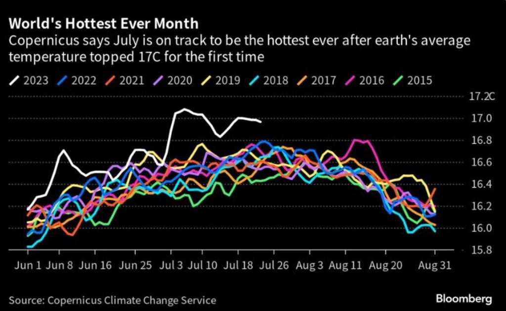 Κύματα καύσωνα έπληξαν το βόρειο ημισφαίριο αυτό το καλοκαίρι, με αποτέλεσμα ο Ιούλιος να γίνει ο πιο ζεστός μήνας στην ιστορία, μετά από τα ρεκόρ του Ιουνίου. Οι εκπομπές ορυκτών καυσίμων θερμαίνουν τον πλανήτη, προκαλώντας ακραία καιρικά φαινόμενα, από τις πλημμύρες στην Ινδία και τις ΗΠΑ έως τις πυρκαγιές στην Ελλάδα και τον Καναδά. Πρόκειται για μία σημαντική απειλή για την υγεία και τα μέσα διαβίωσης εκατομμυρίων ανθρώπων, την στιγμή που ορισμένοι ηγέτες αντιδρούν στη λήψη δραστικότερων μέτρων για την κλιματική αλλαγή.