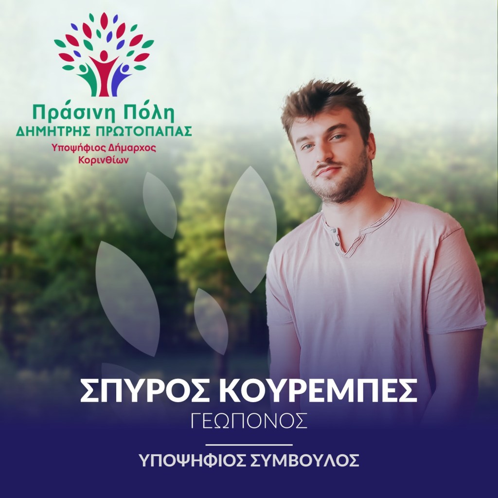 *Ο κ. Κουρεμπές Σπύρος είναι γεωπόνος, μεταπτυχιακός φοιτητής και υποψήφιος δημοτικός σύμβουλος Κορινθίων με τον συνδυασμό «Πράσινη Πόλη»