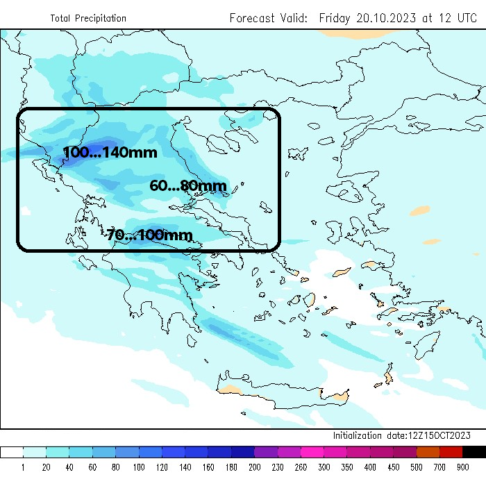 Περιοχές όπως το βόρειο Ιόνιο, η Ήπειρος, η δυτική – κεντρική Μακεδονία, η Θεσσαλία, η δυτική – κεντρική Στερεά, αλλά και η κεντρική και βόρεια Πελοπόννησος, είναι περιοχές οι οποίες ενδέχεται να ξεπεράσουν τοπικά τους 40 με 60 τόνους ανά στρέμμα σε χρονικό διάστημα μικρότερο του 12ωρου, συνθήκες που οδηγούν σε πλημμυρικά επεισόδια είτε τοπικά είτε και πιο εκτεταμένα.