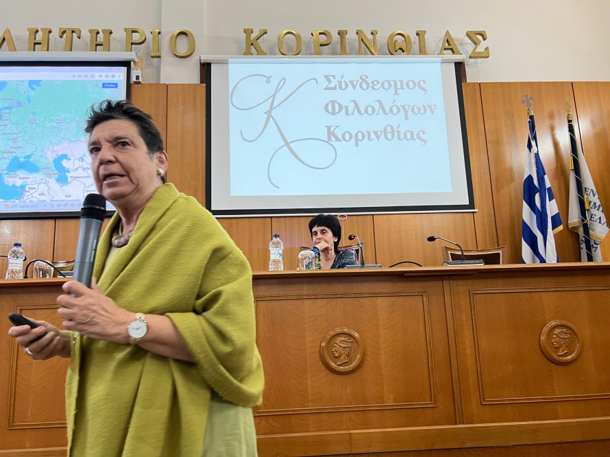 Την Τρίτη 21 Νοεμβρίου στο Επιμελητήριο Κορίνθου, ο Σύνδεσμος Φιλολόγων Κορινθίας πραγματοποίησε μια καθηλωτική εκδήλωση – αφιέρωμα στην ιστορία των τελευταίων οκτώ αιώνων. Η προσκεκλημένη ομιλήτρια, Καθ. Μαρία Ευθυμίου (ιστορικός· ΕΚΠΑ), μάγεψε το κοινό της πρωτοφανώς κατάμεστης αίθουσας του Επιμελητηρίου για περισσότερο από 3 ώρες και 20 λεπτά χωρίς διάλειμμα(!). Πολλοί συμπολίτες μας παρακολούθησαν την εκδήλωση όρθιοι στον διάδρομο ενώ δεκάδες προσήλθαν αλλά αποχώρησαν καθώς ήταν αδύνατο να βρουν θέση.