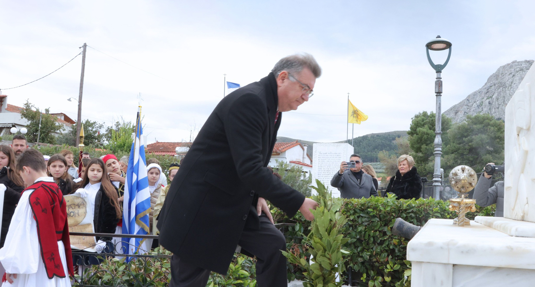 Ενώ στη συνέχεια ακολούθησε η κατάθεση στεφάνων και η ανάκρουση του Εθνικού Ύμνου.