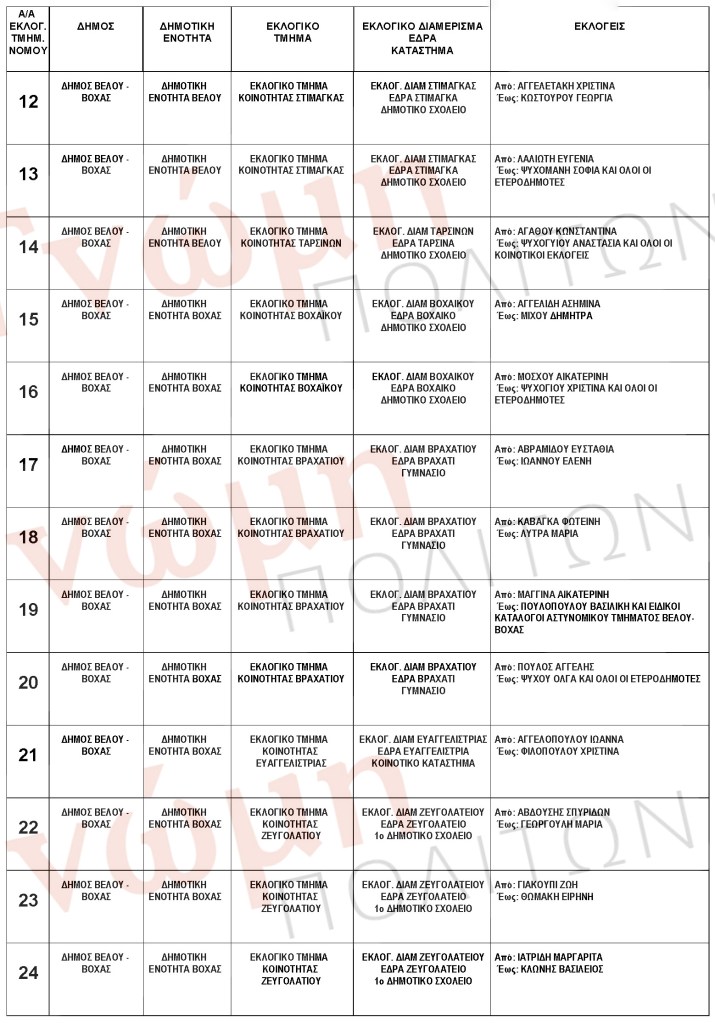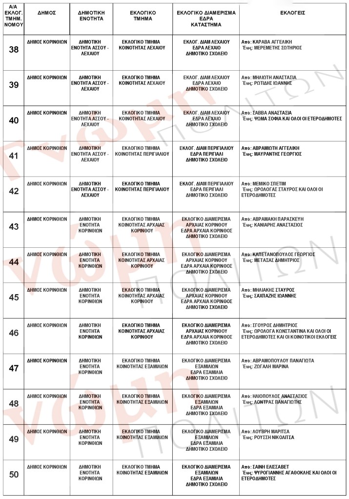 Αναλυτικά τα Τμήματα στην Κορινθία