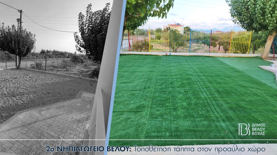 - Τοποθέτηση νέου τάπητα στο προαύλιο του 2ο Νηπιαγωγείου Βέλου
