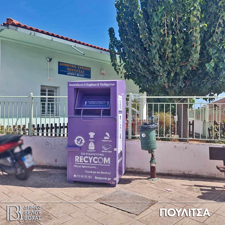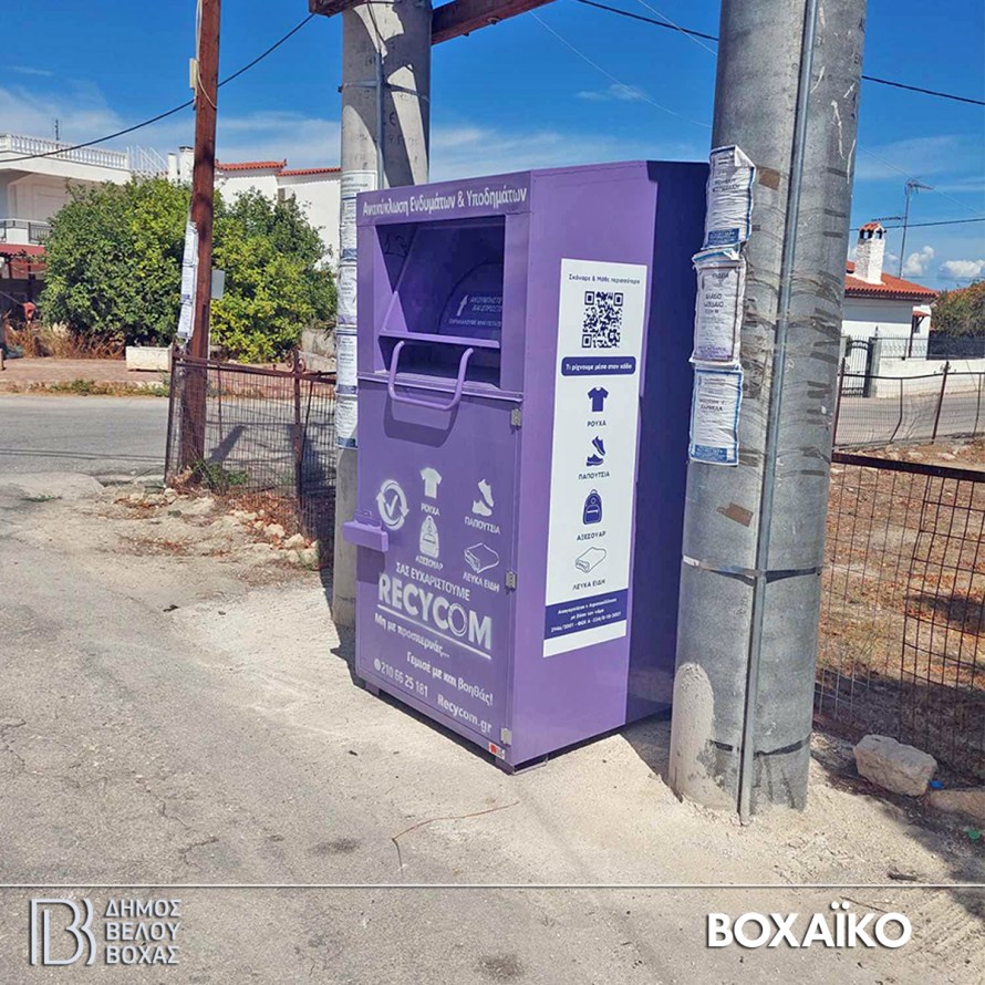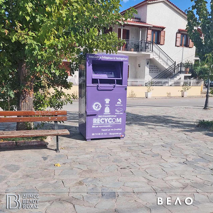 Στην τοποθέτηση μωβ κάδων για την ανακύκλωση ρούχων προχώρησε ο Δήμος Βέλου-Βόχας, υλοποιώντας μια πρωτοβουλία που στοχεύει στην ενίσχυση της περιβαλλοντικής συνείδησης και την προώθηση της κυκλικής οικονομίας.