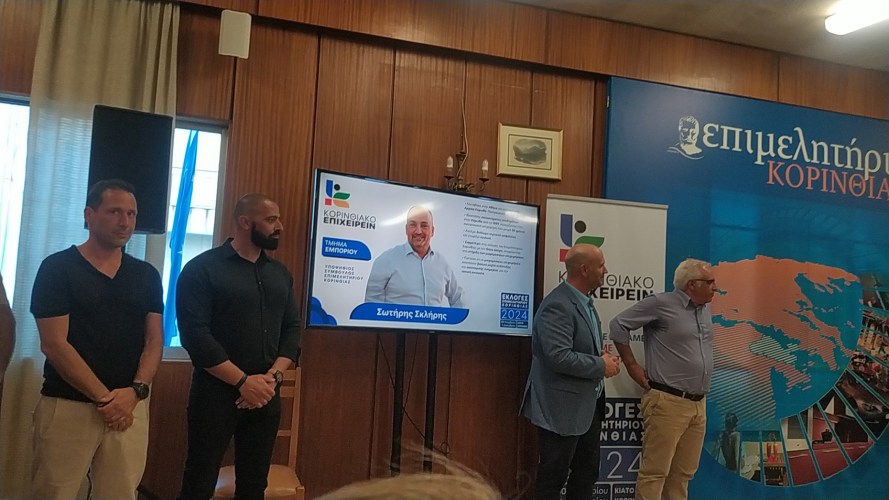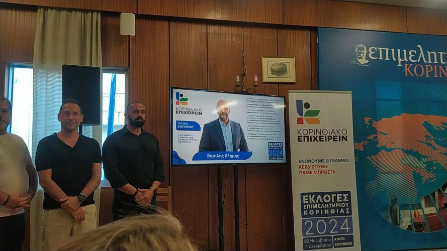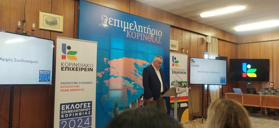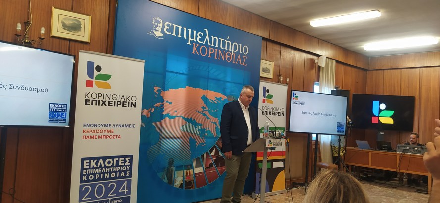 Ο υποψήφιος πρόεδρος του Επιμελητηρίου Κορινθίας, Θανάσης Δούρος ανακοίνωσε χθες Τετάρτη 25 Σεπτεμβρίου, το απόγευμα στην αίθουσα συνεδριάσεων του Επιμελητηρίου Κορινθίας, τους πρώτους 15 υποψηφίους που θα συμμετάσχουν στο ψηφοδέλτιο του συνδυασμού ΚΟΡΙΝΘΙΑΚΟ ΕΠΙΧΕΙΡΕΙΝ για τις προσεχείς επιμελητηριακές εκλογές.