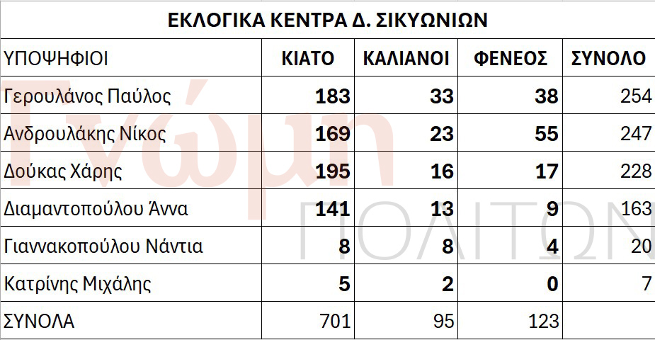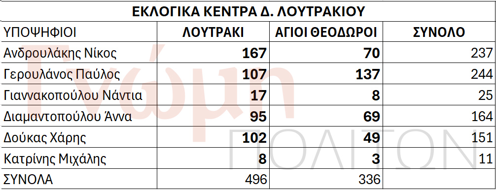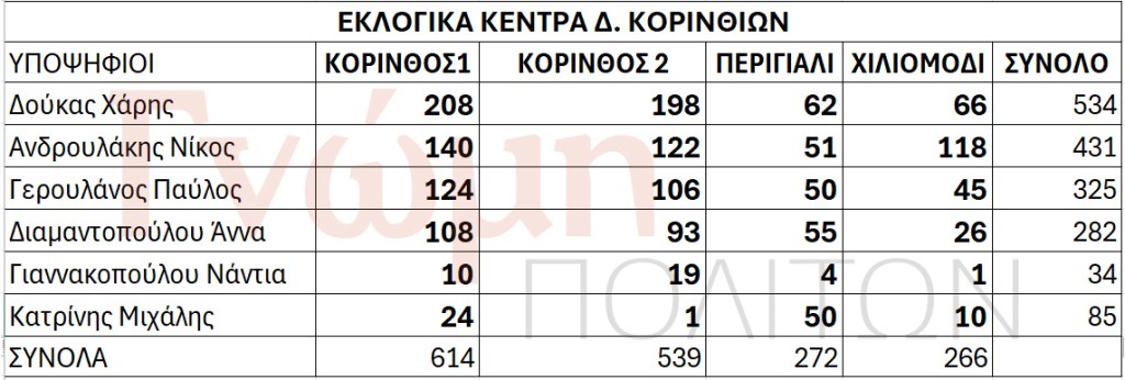 Στην Κορινθία είχαν στηθεί κάλπες σε 11 σημεία και τα αποτελέσματα είναι: