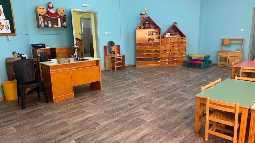 Στο πλαίσιο των εργασιών που πραγματοποιήθηκαν, τοποθετήθηκαν νέα πλακάκια σε όλους τους εσωτερικούς χώρους, προσδίδοντας μια σύγχρονη αισθητική και διευκολύνοντας τη συντήρησή τους. Ακόμη, βάφτηκαν οι τοίχοι με ζεστά, φιλικά χρώματα που δημιουργούν μια ευχάριστη ατμόσφαιρα για τους μικρούς μας φίλους.