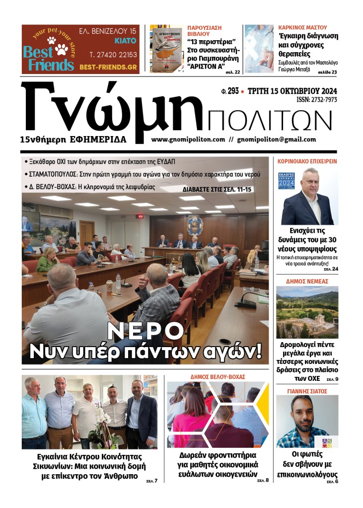 Tagged as: ΔΗΜΟΣ ΒΕΛΟΥ-ΒΟΧΑΣ, ΔΗΜΟΣ ΚΟΡΙΝΘΙΩΝ, ΔΗΜΟΣ ΝΕΜΕΑΣ, ΔΗΜΟΣ ΣΙΚΥΩΝΙΩΝ, ΝΕΡΟ, ΠΕΡΙΦΕΡΕΙΑ ΠΕΛΟΠΟΝΝΗΣΟΥ, ΣΠΥΡΟΣ ΣΤΑΜΑΤΟΠΟΥΛΟΣ