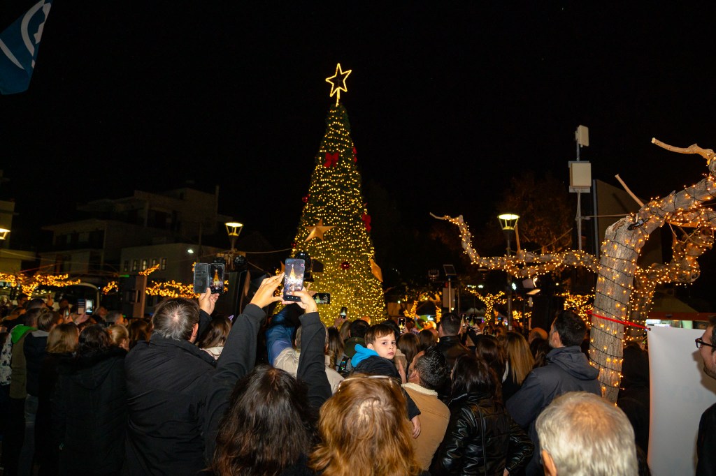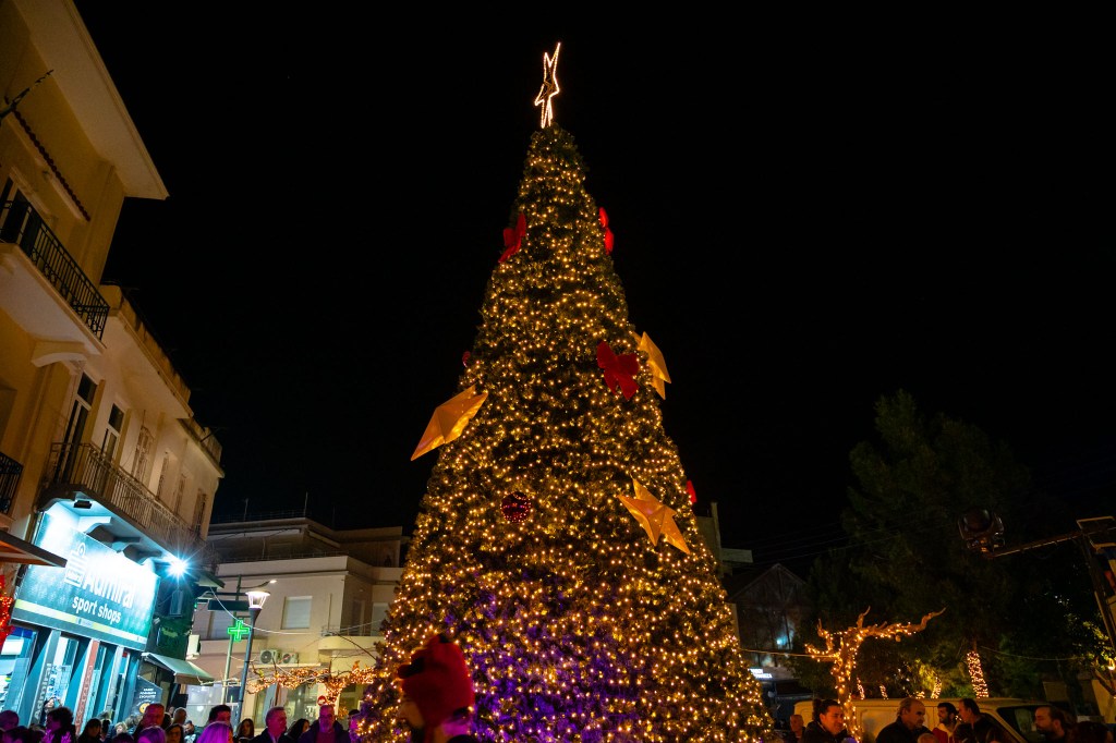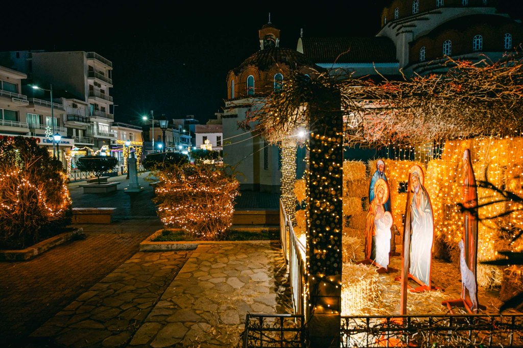 Στην πλατεία Ελευθερίας δεσπόζει το πανύψηλο χριστουγεννιάτικο δέντρο, φωτισμένο με λαμπερά στολίδια, καλώντας όλους να μοιραστούν στιγμές χαράς και ενότητας. Παράλληλα, το φωταγωγημένο παραδοσιακό καραβάκι, μπροστά από τον Ιερό Ναό της Μεταμορφώσεως του Σωτήρος, τιμά τις ρίζες μας και την ελληνική παράδοση.