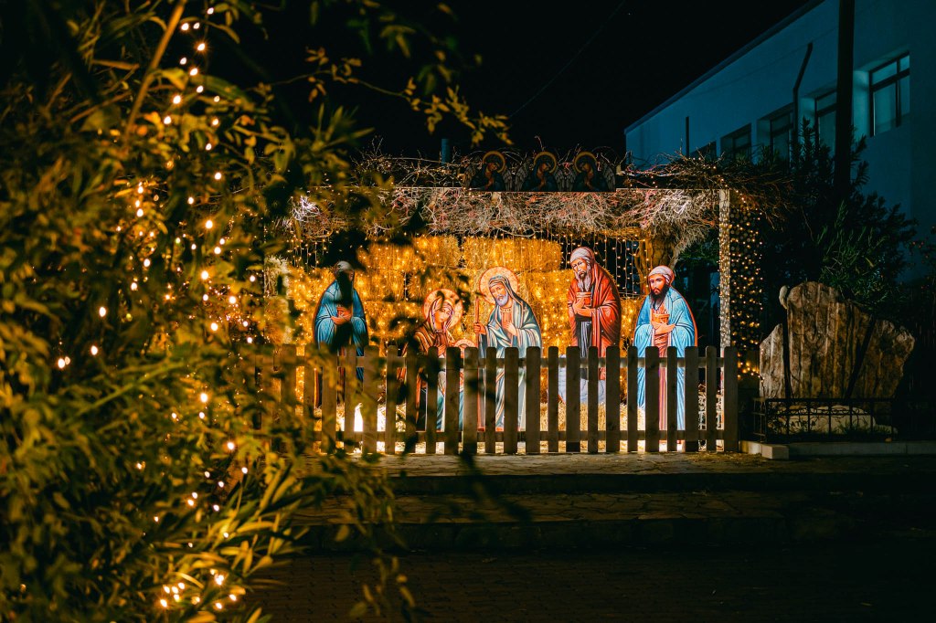 Ένα από τα πιο εντυπωσιακά στοιχεία του φετινού στολισμού είναι η φάτνη μπροστά από το 1ο Δημοτικό Σχολείο Κιάτου. Δημιουργήθηκε με αγάπη και φροντίδα από τον Εμπορικό Σύλλογο Κιάτου, με τη χρηματοδότηση του Δήμου, και αποτελεί πόλο έλξης για τους επισκέπτες.