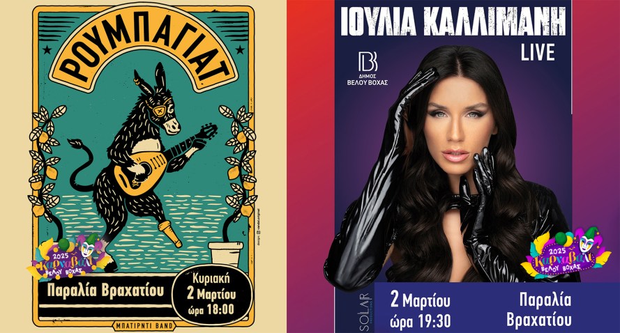 Μοναδικές στιγμές αναμένεται να ζήσουν φέτος όσοι βρεθούν στο Καρναβάλι Βέλου-Βόχας καθώς πρόκειται να κορυφωθεί με ένα πλούσιο μουσικό πρόγραμμα αμέσως μετά την μεγάλη καρναβαλική παρέλαση, στην Παραλία Βραχατίου, την Κυριακή 2 Μαρτίου. Δύο ξεχωριστές συναυλίες θα προσφέρουν στο κοινό ποικιλία ήχων και ρυθμών, ικανοποιώντας κάθε μουσική προτίμηση.