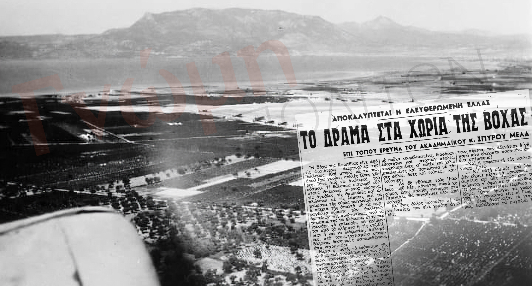 Ο Σπύρος Μελάς, σε άρθρο του στην εφημερίδα «Εμπρός» περιγράφει με συγκλονιστικές λεπτομέρειες την καταστροφή και την εξαθλίωση που άφησε πίσω της η Κατοχή στη Βόχα – Ένα αποκαλυπτικό ρεπορτάζ για τα χωριά που παλεύουν να ξανασταθούν στα πόδια τους και για το νερό της Στυμφαλίας που δεν έρχεται!