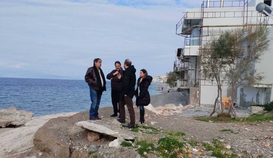 Στη συνέχεια, με τον Γ. Ψυχογιού και μέλη της Οργάνωσης Μελών Ξυλοκάστρου-Ευρωστίνης και της ΝΕ Κορινθίας επισκέφθηκαν συνοδεία των τοπικών Προέδρων περιοχές του Δήμου που αντιμετωπίζουν σοβαρό πρόβλημα με την διάβρωση των ακτών του Κορινθιακού, όπως το Δερβένι, η Λυκοποριά, τα Πιτσά, το Λουτρό, το Καμάρι και το Ξυλόκαστρο στην οδό Αριστοναυτών. Αφού ενημερώθηκαν για την κρισιμότητα της κατάστασης και παρέθεσαν τις παρεμβάσεις που έχουν γίνει για το θέμα στη Βουλή, εστίασαν στην άμεση αναγκαιότητα μετά από 7 χρόνια, η κυβέρνηση να προχωρήσει στην υλοποίηση της Μελέτης για την συνολική αντιμετώπιση της διάβρωσης του Κορινθιακού, που πήρε έτοιμη από την κυβέρνηση ΣΥΡΙΖΑ, η Περιφέρεια να δώσει απαντήσεις για τα 16εκ. ευρώ που θα διαθέσει για τη διάβρωση, από τα οποία η Κορινθία πρέπει να λάβει τα περισσότερα και ο Δήμος να λάβει άμεσα μέτρα με στοχευμένες και τεχνικά άρτιες παρεμβάσεις, λαμβάνοντας υπόψη τις εξαιρετικά επείγουσες συνθήκες, αλλά και τον συνολικό σχεδιασμό της Μελέτης.