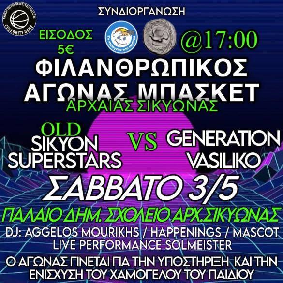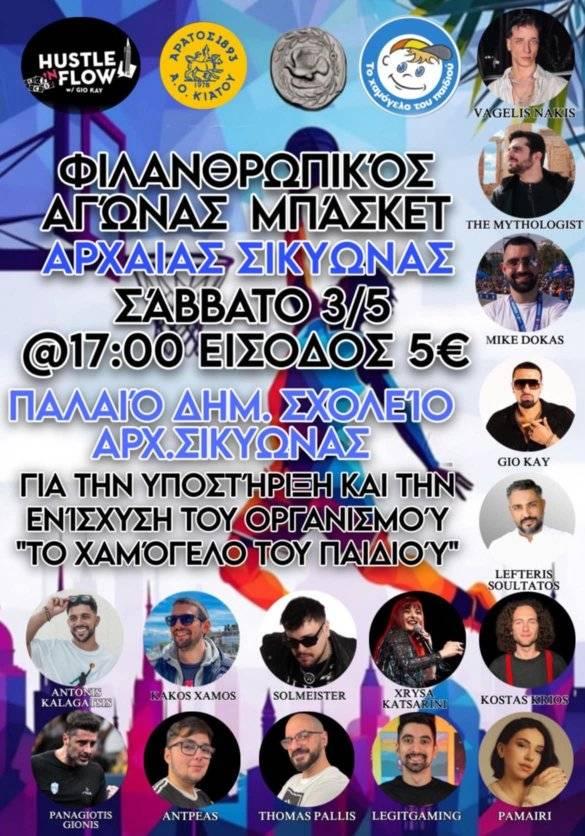 Το Σάββατο 3 Μαΐου στις 17:00, το παλιό δημοτικό σχολείο της Αρχαίας Σικυώνας μετατρέπεται σε κέντρο αθλητικής δράσης και κοινωνικής προσφοράς, φιλοξενώντας έναν φιλανθρωπικό αγώνα μπάσκετ που υπόσχεται συγκίνηση, θέαμα και σημαντικό κοινωνικό αποτύπωμα.