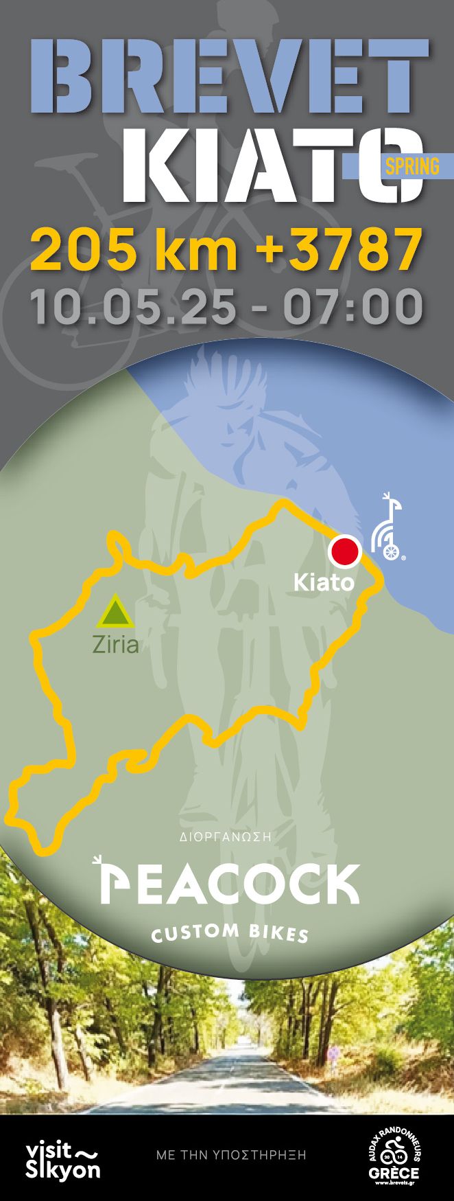 Το Σάββατο 10 Μαΐου, η καρδιά του ποδηλατικού τουρισμού θα χτυπήσει δυνατά στο Κιάτο, με τη διοργάνωση του Brevet KIATO – Spring Edition, υπό την αιγίδα του Δήμου Σικυωνίων και στο πλαίσιο του νέου αθλητικού θεσμού «Σικυώνιος Άθλος». Με εκκίνηση και τερματισμό στην Πλατεία Ελευθερίας, η διαδρομή των 205 χιλιομέτρων αποτελεί ένα αληθινό έπος αντοχής και φυσικής ομορφιάς.