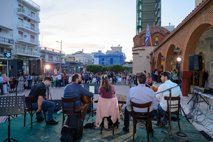 Τῶν χορῶν καὶ τῶν τραγουδιῶν τὰ γλυκύτατα καὶ σεβάσμια ἀπηχήματα, νιοὺς καὶ θυγατέρας καὶ πρεσβυτέρους τοὺς χρόνους, σὲ κυκλικοὺς χορούς, συνεγείραν, ζωντανεύοντας μὲ τὸ σαντοῦρι, τὸ βιολὶ, τὴν κιθάρα καὶ τὸ κλαρῖνο ῥυθμοὺς καὶ ἤχους ἀλησμόνητους καὶ ἀπαράμιλλους στὴν χάρη καὶ στὴ λεβεντιά.