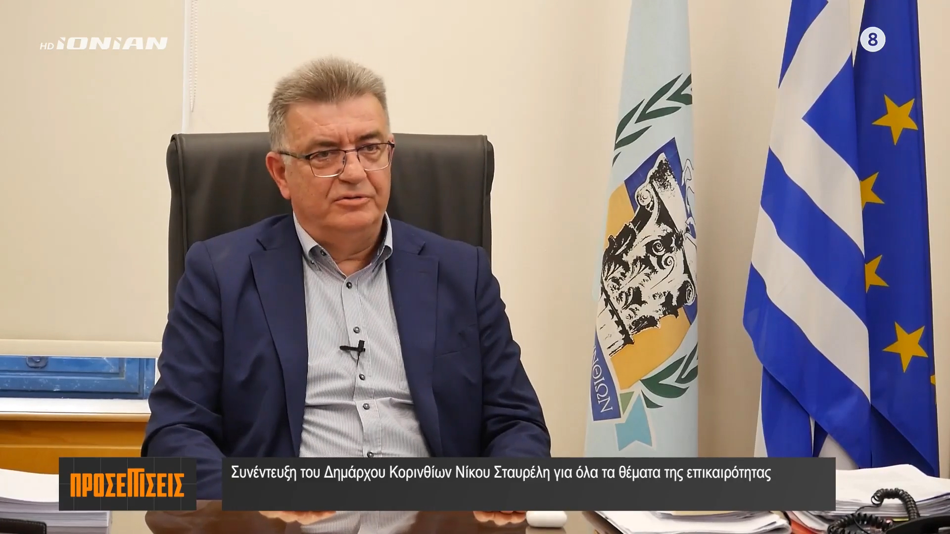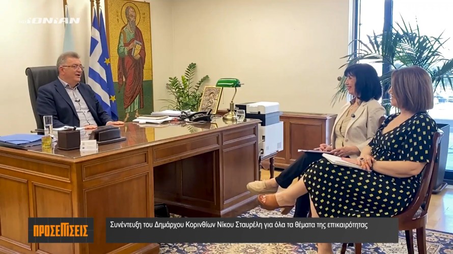 Με έντονη αυτοπεποίθηση και σαφές μήνυμα ενότητας αλλά και μηδενικής ανοχής στις εσωτερικές παρεκκλίσεις, εμφανίστηκε ο Δήμαρχος Κορινθίων Νίκος Σταυρέλης στη συνέντευξη που παραχώρησε στις δημοσιογράφους Φωτούλα Δημητριάδη και Τζένη Σουκαρά για την εκπομπή «Προσεγγίσεις στην Κορινθία» του Ionian TV.