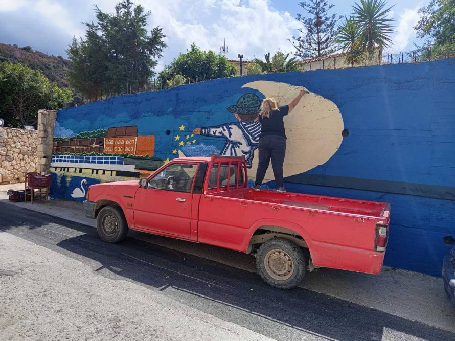 Δεκατρείς ημέρες καλλιτεχνικής δημιουργίας, έμπνευσης και χαράς χρειάστηκαν για να μεταμορφωθεί ένας τοίχος στο Δερβένι Κορινθίας σε ένα ζωντανό έργο τέχνης, που ανανέωσε την όψη της γειτονιάς και άγγιξε τις καρδιές των κατοίκων. Πίσω από την πρωτοβουλία αυτή βρίσκεται η ζωγράφος Ελένη Μουσή, η οποία σε συνεργασία με τους ιδιοκτήτες του χώρου, Ηλία Σοκορέλο και Μαίρη Καστελιώτη, δημιούργησε μια εικαστική παρέμβαση.