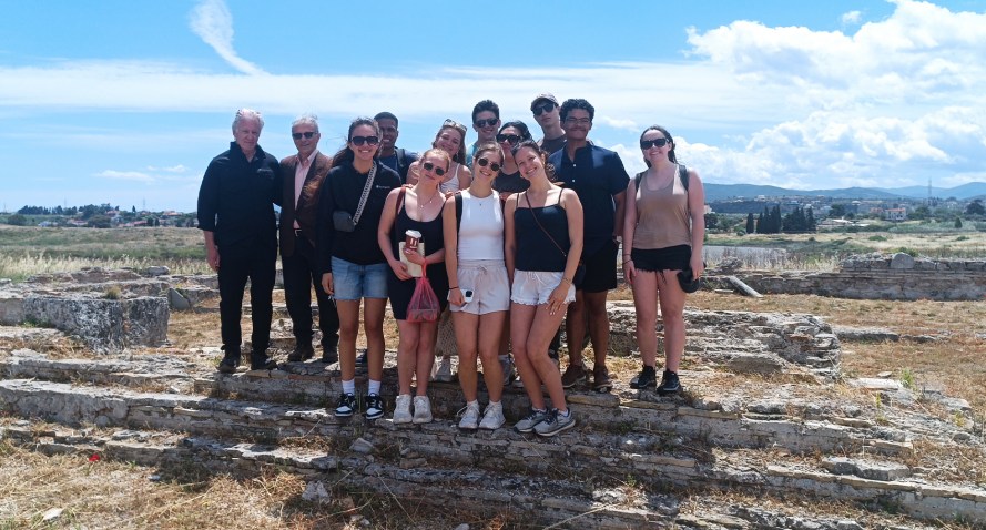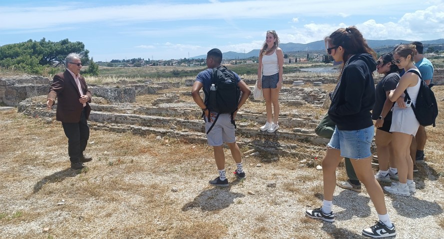 Στο πλαίσιο της γνωριμίας και της κατανόησης διαχρονικά του αρχαίου κόσμου της Κορινθίας με την παγκόσμια επιστημονική κοινότητα και τα πανεπιστήμια πραγματοποιήθηκε το Σάββατο 17 Μαΐου 2025 ξενάγηση – ενημέρωση από τον Απόστολο Ε. Παπαφωτίου σε φοιτητές του Πανεπιστημίου Notre Dame, Indiana, U.S.A. στο χώρο της Βασιλικής του Αγίου Λεωνίδη στο Αρχαίο Λιμάνι Λεχαίου. Η ξενάγηση εντάσσεται σε ένα πρόγραμμα που αφορά του αρχαιολογικούς χώρους της Κορίνθου και της Πελοποννήσου γενικότερα και πραγματοποιείται κάθε χρόνο από τον καθηγητή Robin Rhodes και το Πανεπιστήμιο Notre Dame της Indiana.
