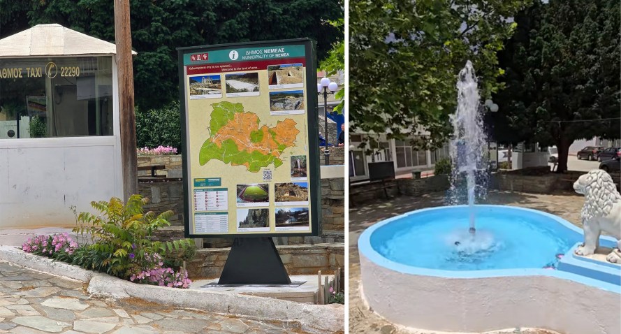 Παράλληλα, μετά από πολλά χρόνια, το ιστορικό σιντριβάνι στο κέντρο της Νεμέας ζωντάνεψε ξανά! Ένα στολίδι ανάμεσα στα καταστήματα και τα ξενοδοχεία μας, που δίνει νέα πνοή στον δημόσιο χώρο και προσφέρει μια ανάσα δροσιάς και αισθητικής.