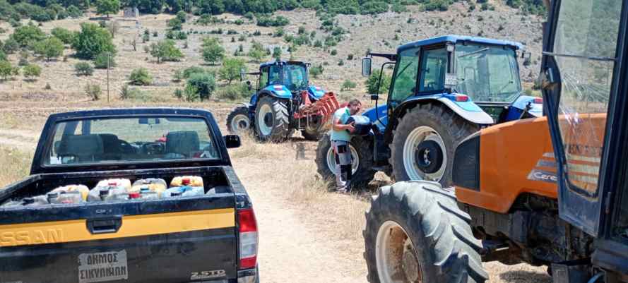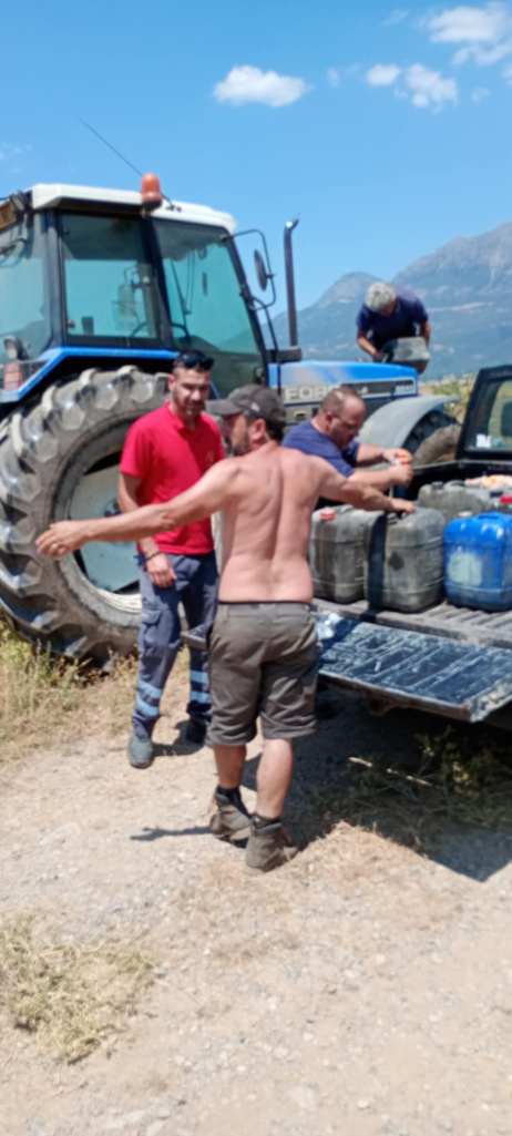 Το φορτηγό του Δήμου, φορτωμένο με μπιτόνια από το Δημοτικό Πρατήριο Καυσίμων, δεν προλάβαινε να γεμίζει τα τεπόζιτα από τα τρακτέρ που έπεφταν ξανά και ξανά στη μάχη – κουρασμένα, γεμάτα στάχτη, μα με οδηγούς που δεν λύγισαν ούτε στιγμή. Ήταν μια αλυσίδα από καρδιές και χέρια. Ήταν μια μεγάλη ενιαία ψυχή. Όλος ο τόπος – άνθρωποι, μηχανές, πρόσωπα σκονισμένα αλλά πεισμωμένα – έγιναν μια μεγάλη, κοινή προσπάθεια. Έγιναν αντίσταση. Και προσευχή. Και ελπίδα.