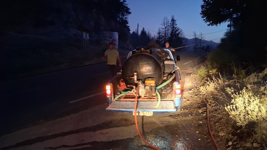 Με σχοινιά στους ώμους, με μπουκάλες στα χέρια, με φώτα κεφαλής μέσα στο σκοτάδι και με τα μάτια γεμάτα αγωνία. Κουβαλούσαν μάνικες, λάστιχα, σωλήνες κατάσβεσης. Έσυραν βαριά φορτία, διένειμαν νερά και τροφή στους πυροσβέστες, σκαρφάλωναν πάνω-κάτω το βουνό ακούραστοι, ημέρα και νύχτα. Έσβηναν μικροεστίες προτού ξαναφουντώσουν, έτρεχαν να διορθώσουν βλάβες στα οχήματα, στήριζαν κάθε ανάγκη που προέκυπτε. Επικουρούσαν τους πυροσβέστες σε ό,τι -μα σε ό,τι- τους ζητήθηκε.