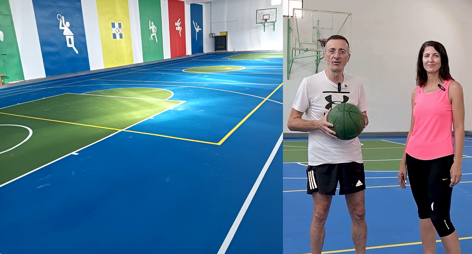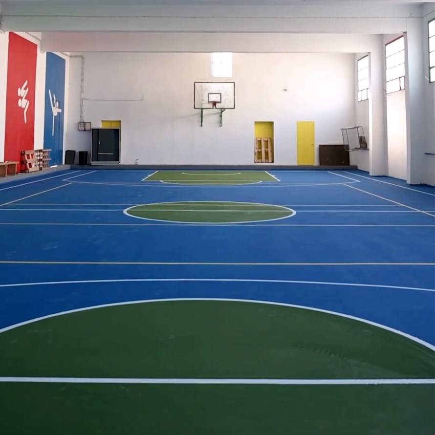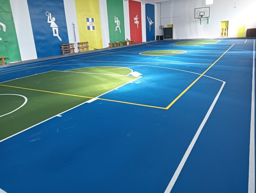 Η ανακαίνιση περιλάμβανε την τοποθέτηση νέου αντικραδασμικού και αντιολισθητικού δαπέδου, το οποίο ανταποκρίνεται στις σύγχρονες προδιαγραφές ασφάλειας και άθλησης. Παράλληλα, έγιναν εκτεταμένα βαψίματα και διαγραμμίσεις, δίνοντας μια ανανεωμένη εικόνα στον χώρο και βελτιώνοντας την εμπειρία των αθλητών και των μαθητών.