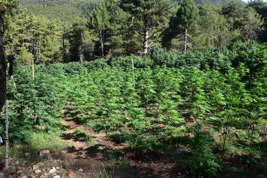 Η συντονισμένη δράση της Αστυνομικής Διεύθυνσης Κορινθίας, με τη συμμετοχή του Τμήματος Δίωξης και Εξιχνίασης Εγκλημάτων, της Ομάδας Πρόληψης και Καταστολής του Εγκλήματος (Ο.Π.Κ.Ε.), της Ειδικής Κατασταλτικής Αντιτρομοκρατικής Μονάδας (Ε.Κ.Α.Μ.) καθώς και του Αστυνομικού Τμήματος Σικυωνίων, αποκάλυψε φυτεία-μαμούθ αποτελούμενη από 2.012 δενδρύλλια κάνναβης, τα οποία είχαν ύψος έως και 2,5 μέτρα.