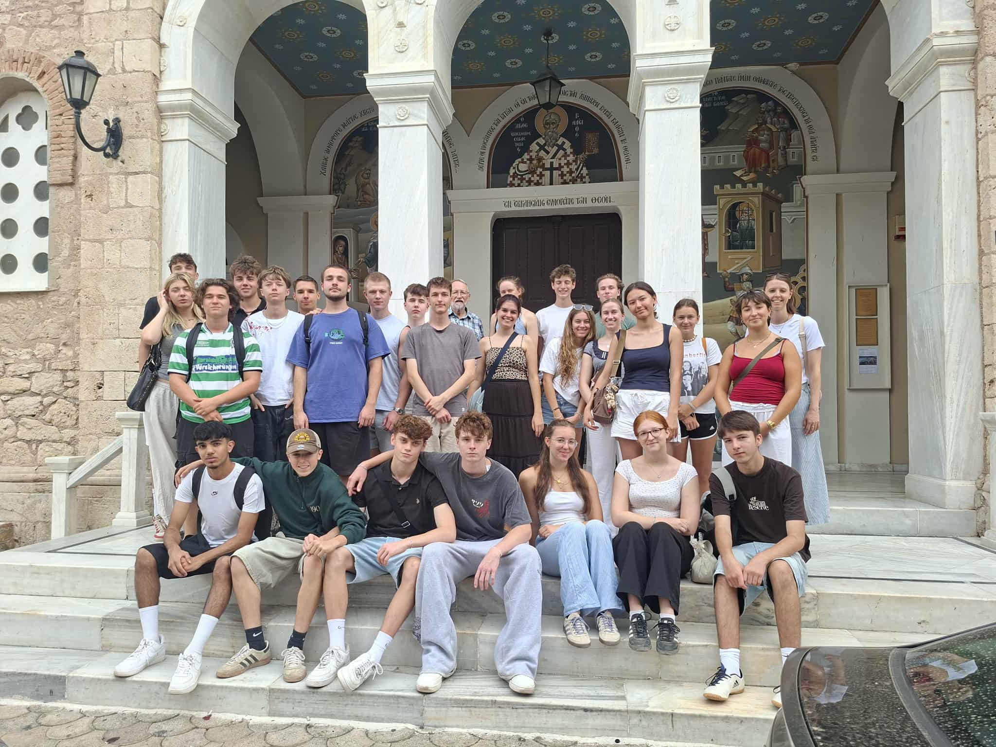 Στο πλαίσιο της επίσκεψής τους, την Τετάρτη 18 Σεπτεμβρίου, οι φιλοξενούμενοι μαθητές επισκέφθηκαν την εκκλησία του Αγίου Βλασίου, πολιούχου του Ξυλοκάστρου, όπου ξεναγήθηκαν και γνώρισαν την ιστορία και την πολιτιστική κληρονομιά της περιοχής.