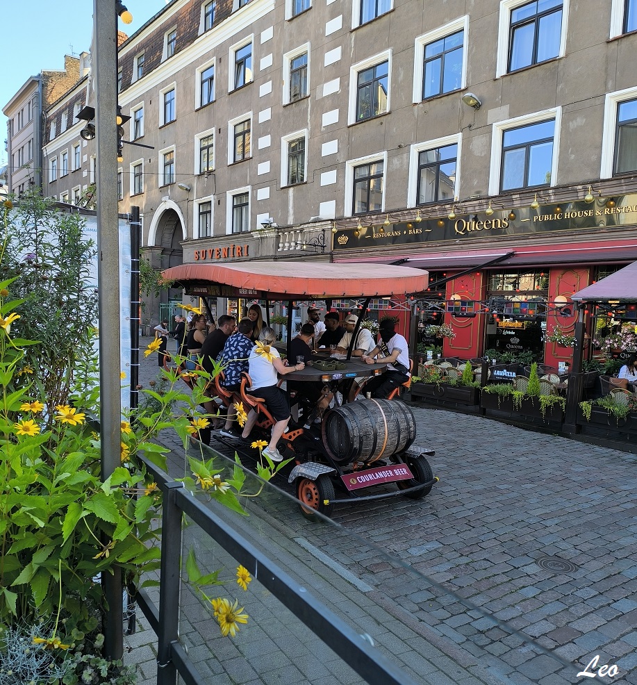 Το κατασκεύασμα που βλέπετε είναι μια τροχήλατη κινούμενη μπυραρία που κάθεσαι, πίνεις κατά βούλησιν και αντοχή, δοκιμάζεις και τα τοπικά προϊόντα αλλαντοποιίας και ταυτόχρονα ενημερώνεσαι για τα διάφορα μνημεία στα οποία σε περιφέρει ο κάπελας.