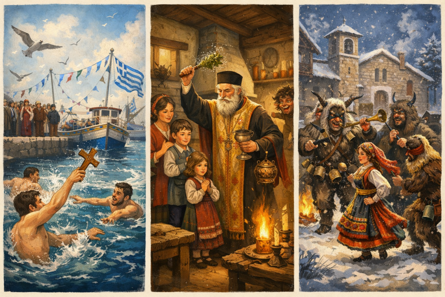 Τα Θεοφάνεια, κορυφαία δεσποτική εορτή της Ορθοδοξίας, δεν σηματοδοτούν μόνο τη λήξη του Δωδεκαημέρου, αλλά και μια πυκνή συνάντηση πίστης, λαϊκής παράδοσης και συλλογικής μνήμης. Η βάπτιση του Χριστού στον Ιορδάνη ποταμό μεταφράζεται, στον ελληνικό χώρο, σε ένα σύνολο δοξασιών και εθίμων που διαμορφώθηκαν μέσα στους αιώνες, συνδέοντας το θρησκευτικό γεγονός με το νερό, τη φύση και τον κύκλο της ζωής.