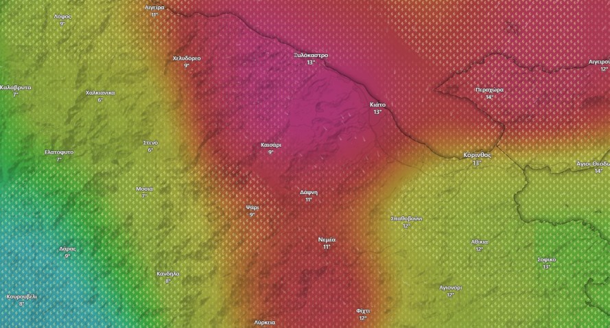 Ο προγνωστικός χάρτης για την Τετάρτη δείχνει ότι η πίεση θα είναι καθολική. Από το Ξυλόκαστρο και το Κιάτο, μέχρι την Κόρινθο, τη Νεμέα και τις περιοχές της Ανατολικής Κορινθίας, ο καιρός θα παρουσιάσει ραγδαία επιδείνωση.