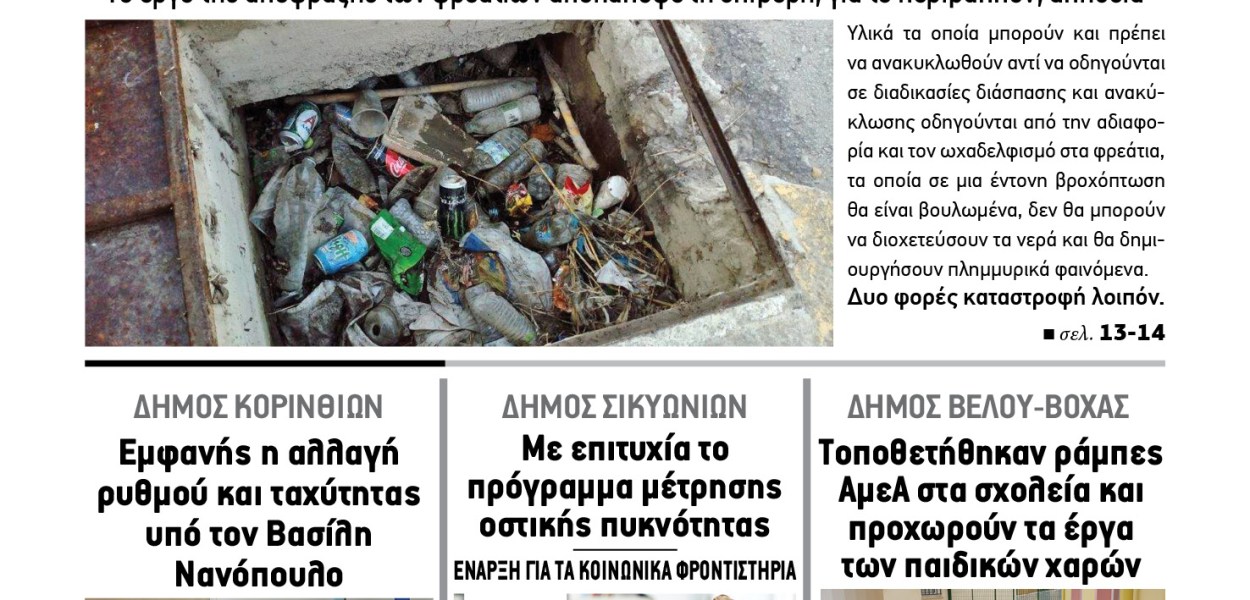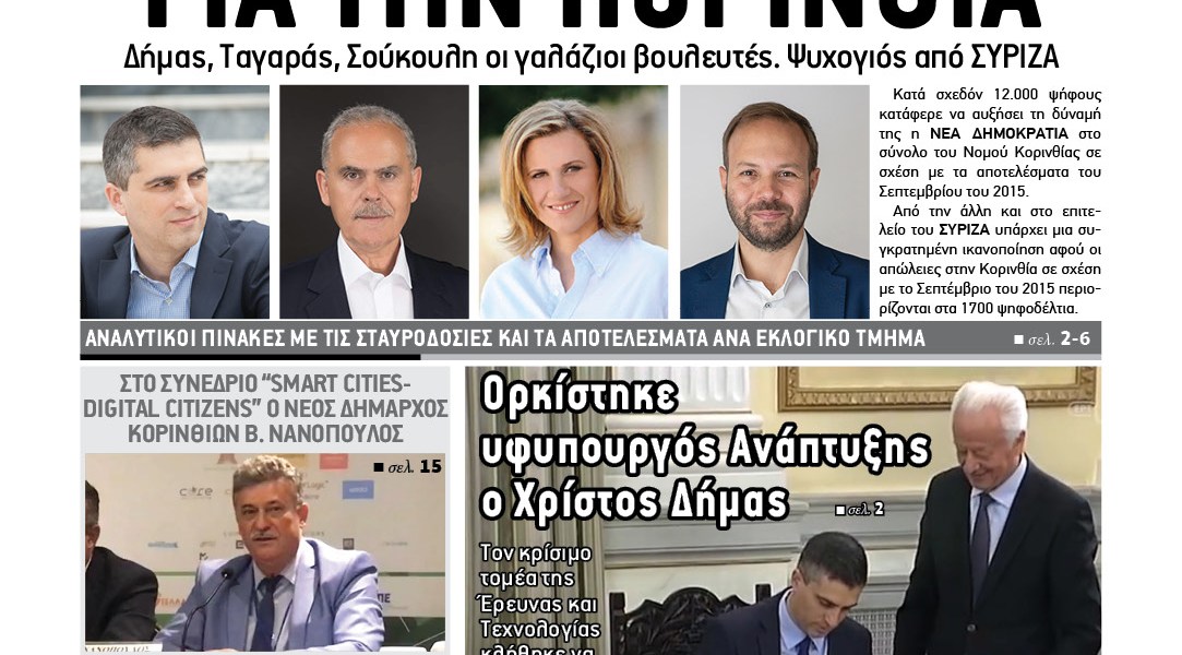 ΔΙΑΒΑΣΤΕ: Επίσκεψη Νίκα στην ΠΕ Κορινθίας – Συναντήσεις Σταματόπουλου με τα νέα Κοινοτικά Συμβούλια – Με 15 εκατ. ευρώ θα σταματήσουμε να πνιγόμαστε λέει ο Αννίβας Παπακυριάκος – Δικαιώθηκα απαντά ο Θανάσης Μανάβης. – Εφ’ ΄όλης της ύλης συνέντευξη του Βασίλη Νανόπουλου – Γιάννης Παπαδημητρίου, ένας πρόεδρος για το Ζευγολατιό από άλλο ανέκδοτο – Επίτιμος πρόεδρος του Επιμελητηρίου Κορινθίας ο Βασίλης Νανόπουλος