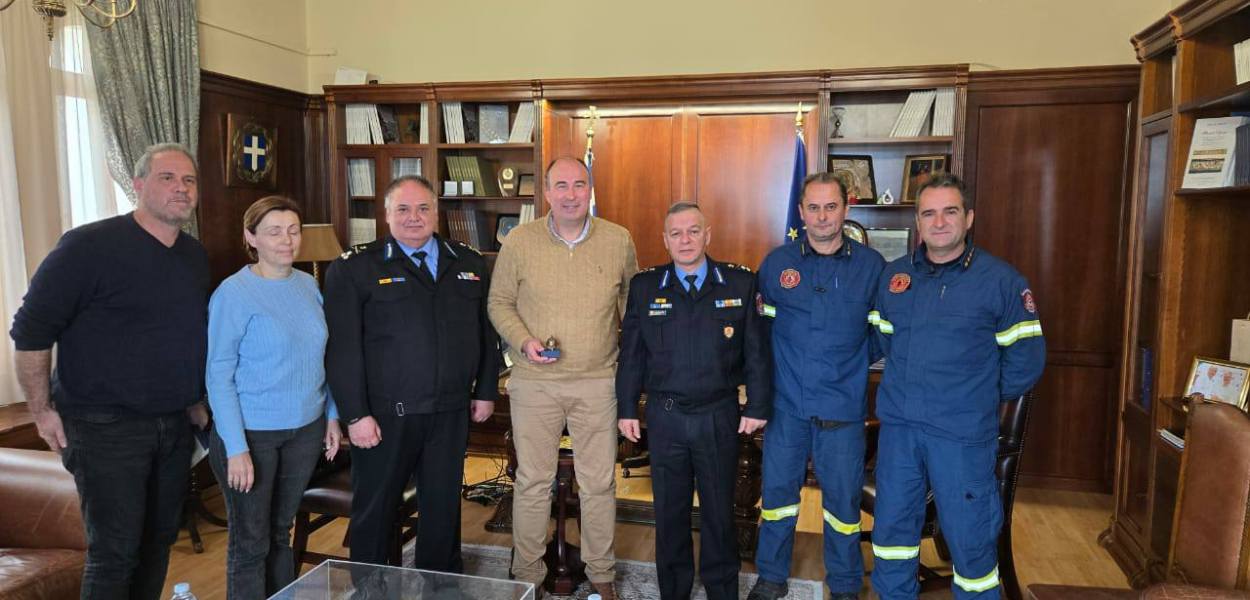 Σε μια σημαντική συνάντηση που πραγματοποιήθηκε στην Κορινθία, ο Αντιπεριφερειάρχης Τάσος Γκιολής υποδέχθηκε τον Αντιστράτηγο του Πυροσβεστικού Σώματος και Επιθεωρητή Νοτίου Ελλάδος, κ. Χρήστο Πλατά, τον Υποστράτηγο και Συντονιστή Επιχειρήσεων Πελοποννήσου, κ. Βασίλειο Σολδάτο, καθώς και τον Διοικητή της Πυροσβεστικής Υπηρεσίας Κορινθίας, κ. Δημήτριο Λερή.