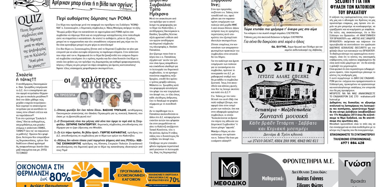 Σ’ αυτό το φύλλο διαβάστε: ΙΔΙΟΚΤΗΣΙΕΣ ΕΡΜΑΙΟ ΣΕ ΑΣΥΔΟΤΟΥΣ ΡΟΜΑ! Σειρά παρεμβάσεων της «ΚΟΙΝΩΝΙΑΣ» φέρνει εξελίξεις… Δ.Σ. ΒΕΛΟΥ-ΒΟΧΑΣ: Είμαστε μια ωραία ατμόσφαιρα!!! (Παρέμβαση της Ο.Μ. ΣΥΡΙΖΑ ΒΕΛΟΥ-ΒΟΧΑΣ) ΕΠΕΤΕΙΑΚΟ ΑΦΙΕΡΩΜΑ: Τι ακριβώς γιορτάζουμε την 28η Οκτωβρίου; Ιδιωτικό Security για το Βραχάτι! Η εταιρεία Ραψωματιώτη βάζει την Κορινθία στην κομποστοποίηση Ο […]