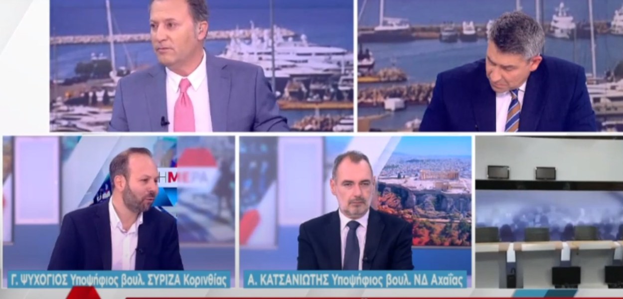 Σημεία από την συνέντευξη που παραχώρησε σήμερα Τετάρτη 10/5/2023 ο υποψήφιος βουλευτής ΣΥΡΙΖΑ –ΠΣ Νομού Κορινθίας, Γιώργος Ψυχογιός, στην τηλεοπτική εκπομπή «ΣΗΜΕΡΑ» του ΣΚΑΪ με τους Δημήτρη Οικονόμου και Άκη Παυλόπουλο και έτερο προσκεκλημένο τον υποψήφιο βουλευτή ΝΔ Αχαΐας, Ανδρέα Κατσανιώτη.