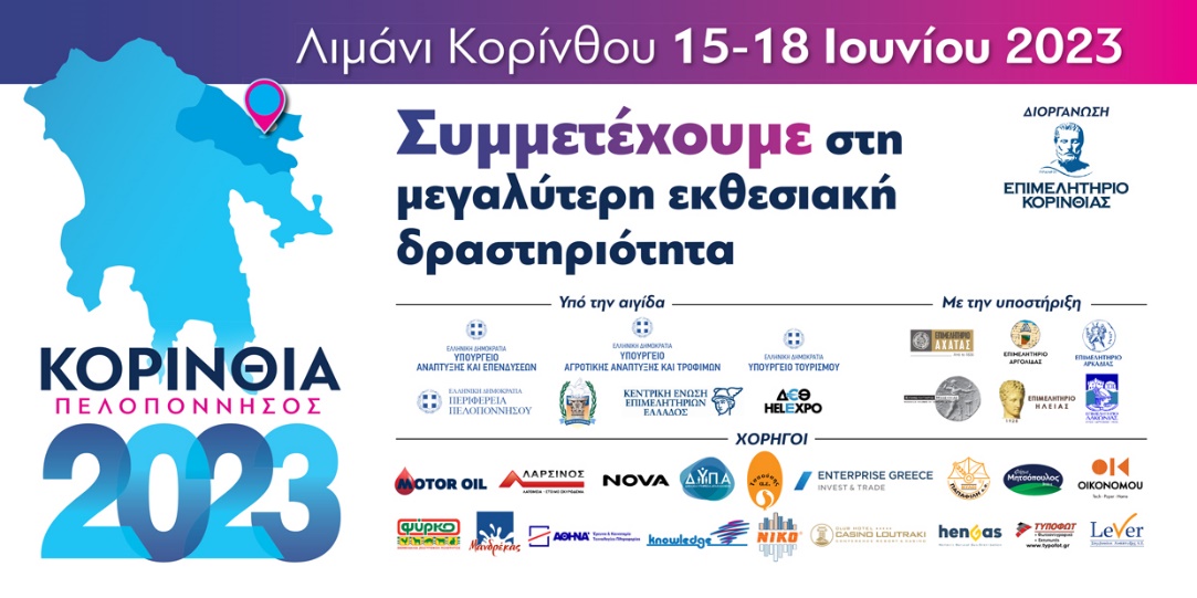 Το Επιμελητήριο Κορινθίας στο πλαίσιο της προσπάθειας προβολής των προϊόντων και των υπηρεσιών της Περιφέρειάς του, διοργανώνει στην Κόρινθο την Εκθεσιακή Δραστηριότητα «ΚΟΡΙΝΘΙΑ – ΠΕΛΟΠΟΝΝΗΣΟΣ 2023».