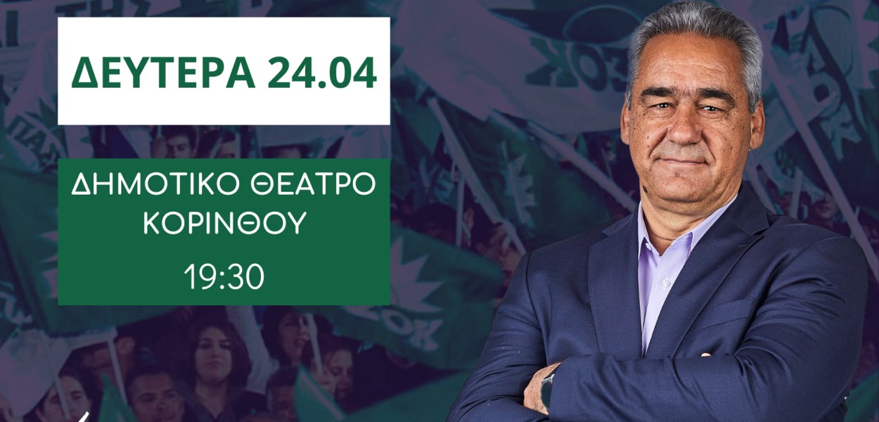 Τη Δευτέρα 24 Απριλίου θα πραγματοποιηθεί η πολιτική εκδήλωση του υποψηφίου Βουλευτή Κορινθίας με το ΠΑΣΟΚ-ΚΙΝΑΛ, Βαγγέλη Ανδριανάκου, στο Δημοτικό Θέατρο Κορίνθου στις 19:30 το απόγευμα.