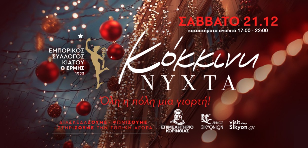 Η πιο μεγάλη και φωτεινή νύχτα του χρόνου πλησιάζει, και το Κιάτο ετοιμάζεται να φορέσει τα γιορτινά του. Ο Εμπορικός Σύλλογος Κιάτου προσκαλεί όλους κατοίκους και επισκέπτες, το Σάββατο 21 Δεκεμβρίου, από τις 5 το απόγευμα έως τις 10 το βράδυ για μια αξέχαστη “Κόκκινη Νύχτα”! Το κέντρο […]
