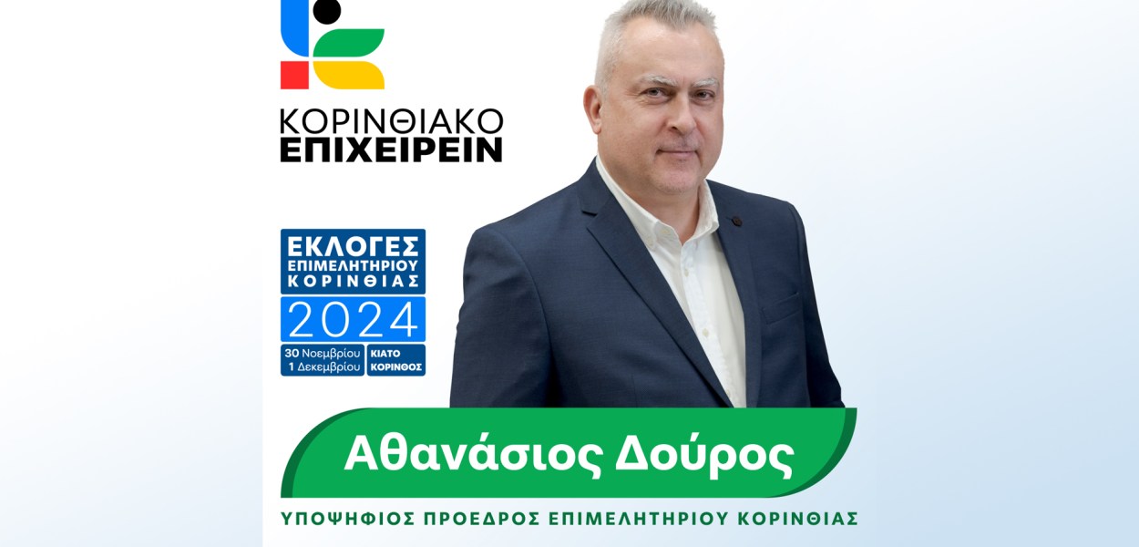 «Η υποψηφιότητά µου για τη θέση του Προέδρου στο Επιµελητήριο Κορινθίας είναι µια φυσική συνέχεια της επαγγελµατικής µου πορείας, και βλέπω µε αισιοδοξία την ευκαιρία να συµβάλλω στη δυναµική ανάπτυξη της περιοχής µας, προσφέροντας την εµπειρία και το όραµά µου», αναφέρει ο Αθανάσιος Δούρος.