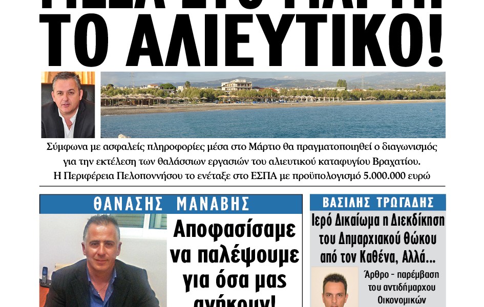 Σ’ αυτό το φύλλο διαβάστε: ΘΑΝΑΣΗΣ ΜΑΝΑΒΗΣ, υποψ. δήμαρχος Βέλου-Βόχας: «Αποφασίσαμε να παλέψουμε για όσα μας ανήκουν!» ΒΑΣΙΛΗΣ ΤΡΩΓΑΔΗΣ, αντιδήμαρχος Οικονομικών Βέλου-Βόχας: «Ιερό Δικαίωμα η Διεκδίκηση του Δημαρχιακού Θώκου από τον Καθένα, Αλλά…» ΝΙΚΟΣ ΤΣΙΤΟΥΡΑΣ – ΒΟΥΔΟΥΡΗΣ: Χτίζει δυνατή δημοτική ομάδα. Πλαισιώνεται από ανθρώπους που έχουν την διάθεση, την εμπειρία, αλλά […]