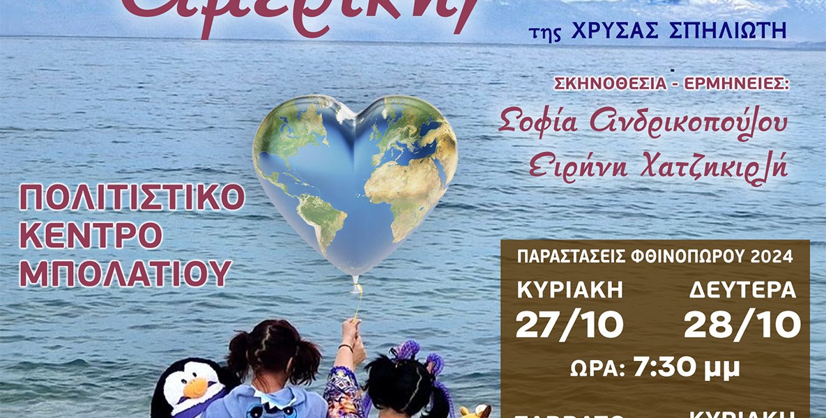Έρχεται, για όσους δεν πρόλαβαν την άνοιξη, η παράσταση που άφησε τις καλύτερες εντυπώσεις… «Ποιος Ανακάλυψε την Αμερική» της Χρύσας Σπηλιώτη, στο Πολιτιστικό Κέντρο Μπολατίου με την Ειρήνη Χατζηκιρλή και τη Σόφη Ανδρικοπούλου… Μην το χάσετε..